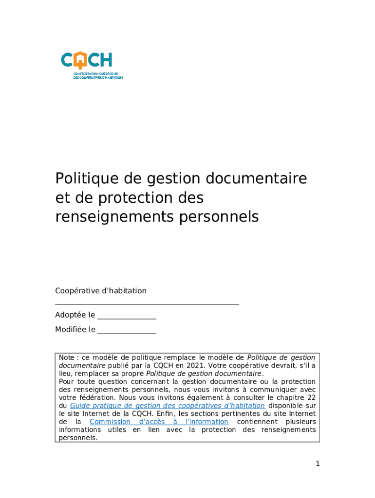 Instructions for the form Politique de gestion documentaire et de protection des ...