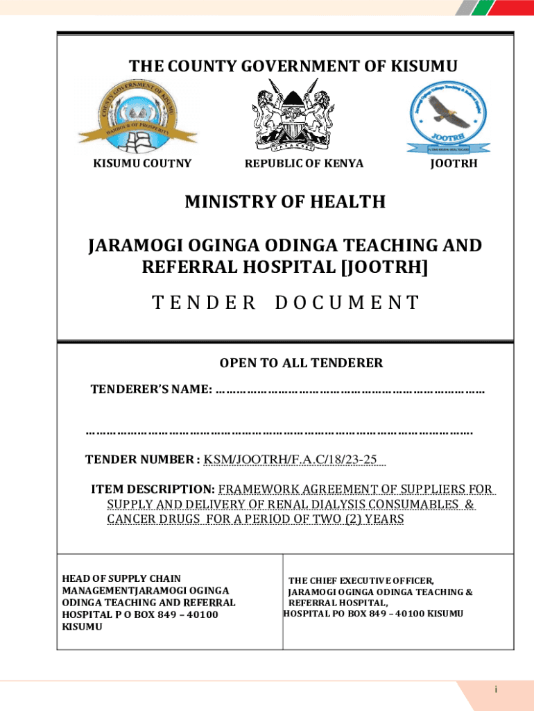 THE COUNTY GOVERNMENT OF KISUMUKISUMU COUTNYREPUBLIC OF KENYAJOOTRHMINISTRY OF HEALTH