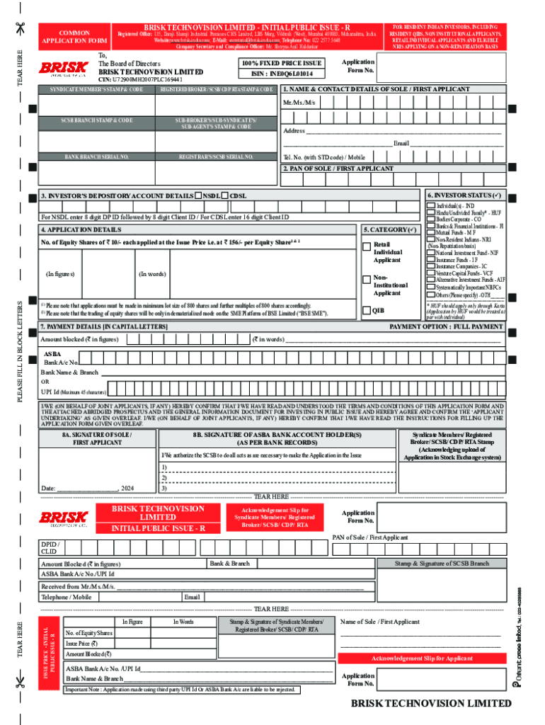 Registered Office: 135, Damji Shamji Industrial Premises CHS Limited, LBS Marg, Vikhroli (West), Mumbai 400083, Maharashtra, India. Website:www.briskindia.com; EMail: secretarial@briskindia.com; Telephone