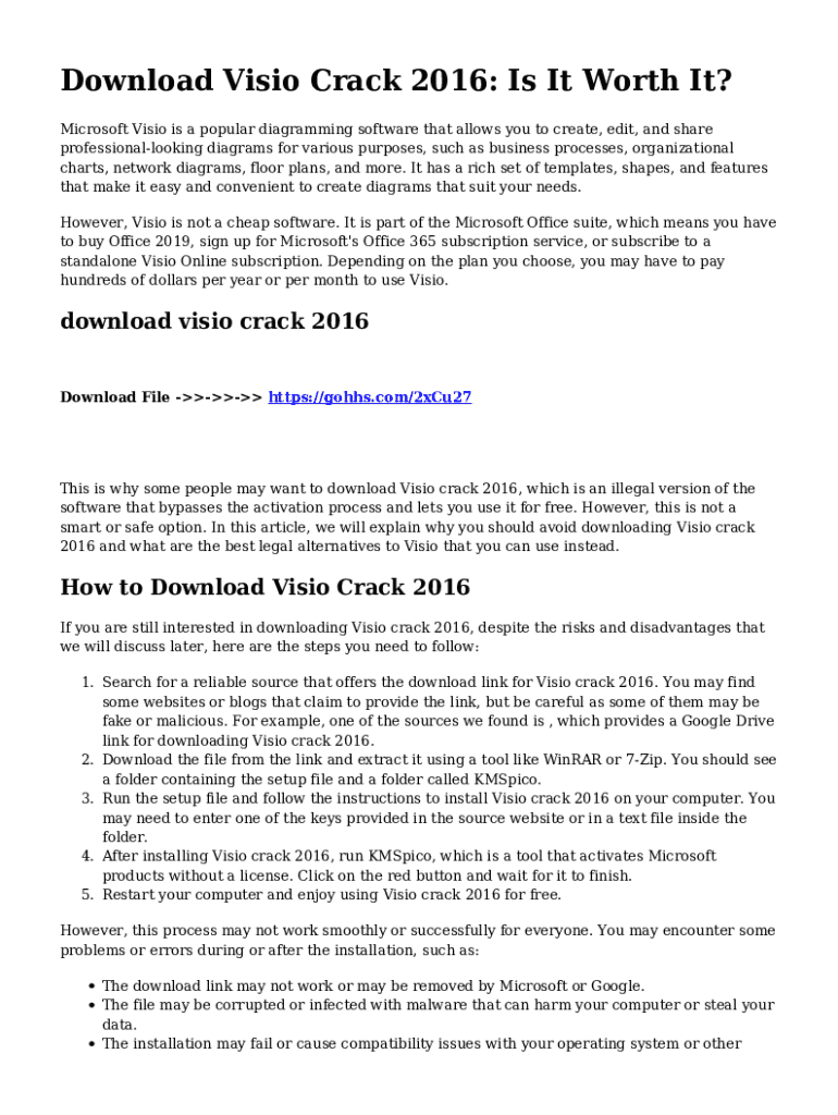 Download Visio Crack 2016: Is It Worth It? Microsoft Visio is a popular diagramming software that allows you to create, edit, and share professionallooking diagrams for various purposes, such as business