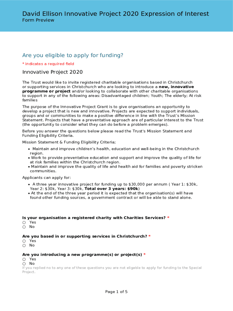 Get the free The David Ellison Charitable Trust - Contestable Grant ...