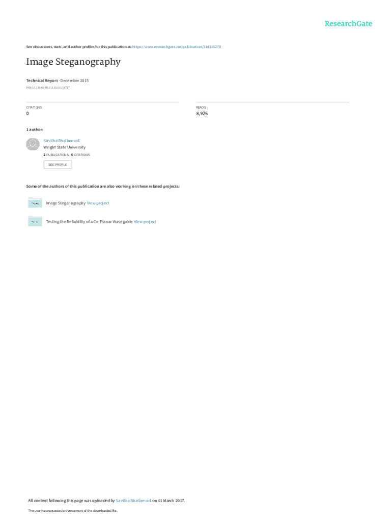 See discussions, stats, and author profiles for this publication at: https://www.researchgate.net/publication/314116270Image Steganography