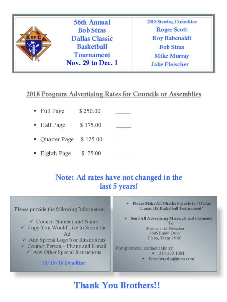 Get the free 56th Annual Bob Stras Dallas Classic Basketball Tournament