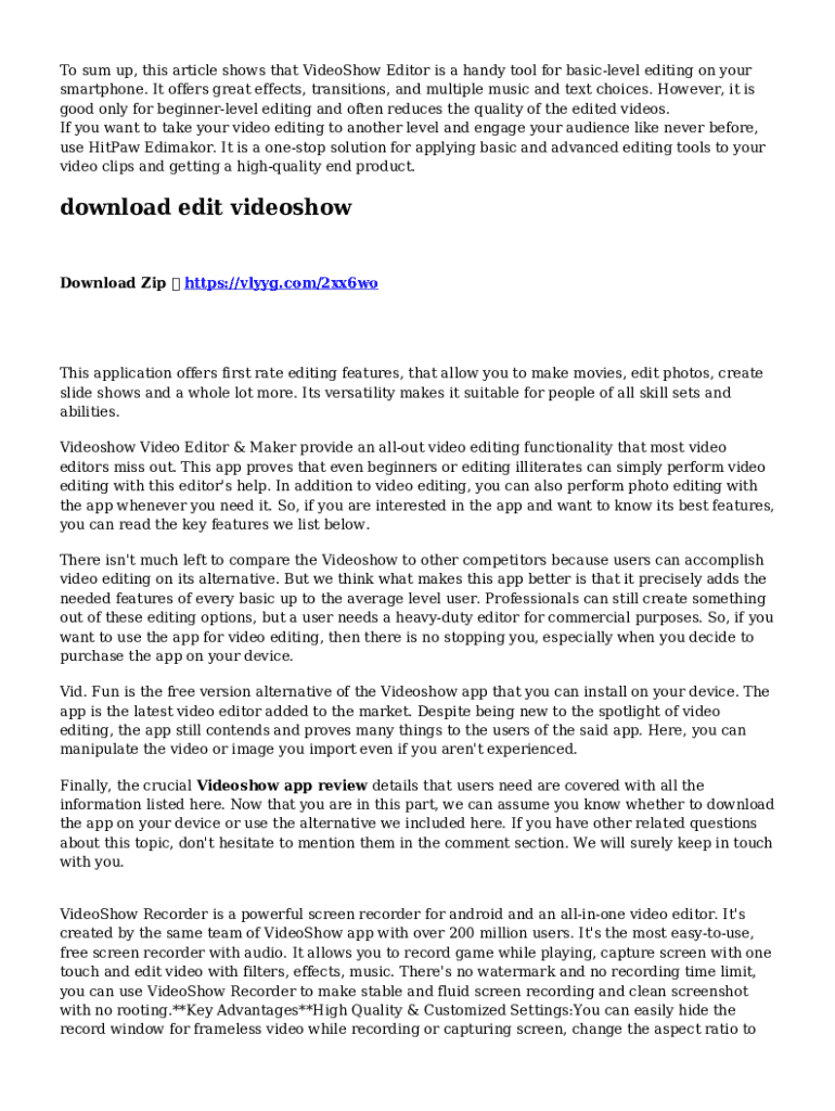 To sum up, this article shows that VideoShow Editor is a handy tool for basiclevel editing on your smartphone. It offers great effects, transitions, and multiple music and text choices. However, it