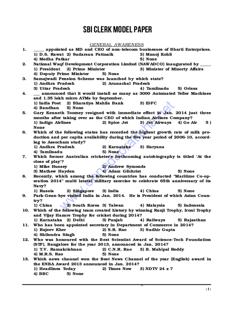 Sbi Clerks Model Paper is not the form you're looking for?Search for another form here.
