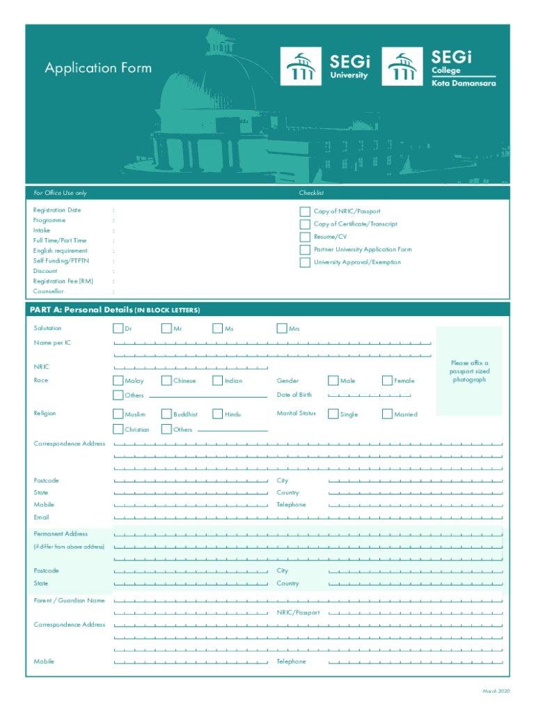 Application FormFor Office Use onlyChecklistRegistration Date: