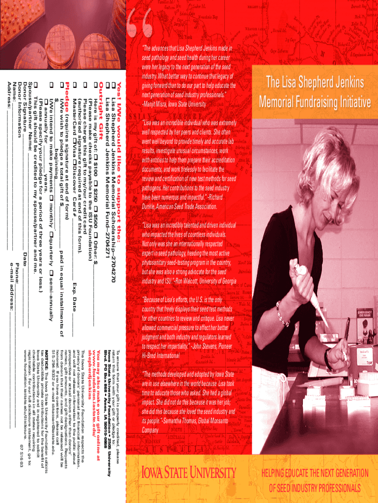 The Lisa Shepherd Jenkins Memorial Fundraising Initiative The advances that Lisa Shepherd Jenkins made in seed pathology and seed health during her career were her legacy to the next generation of