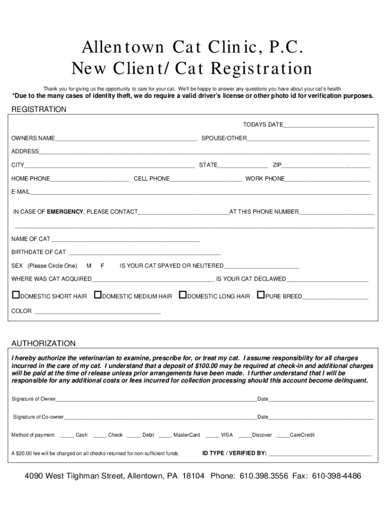 Obtain the new patient registration form from the hospital or medical facility in Allentown.
