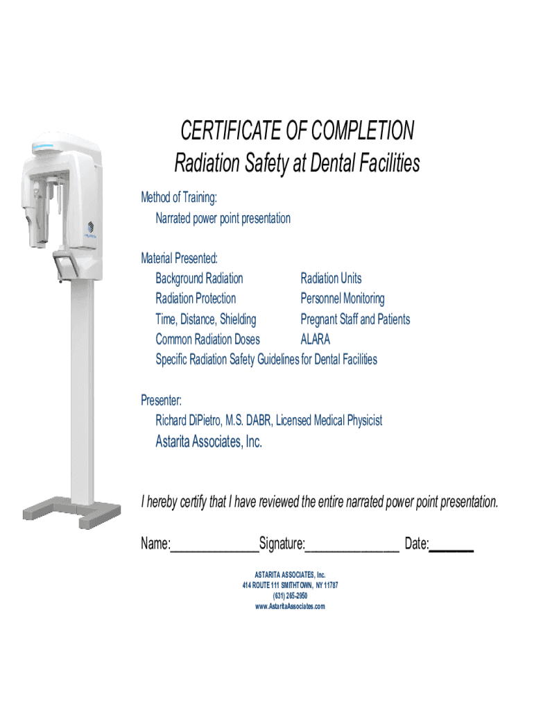 Get the free CERTIFICATE OF COMPLETION Radiation Safety at ...