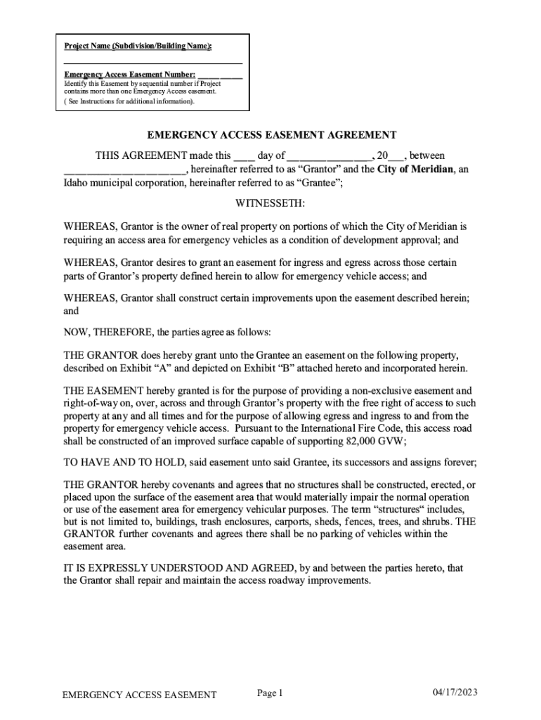 Get the free TM Crossing Emergency Access Easement Agreement ...