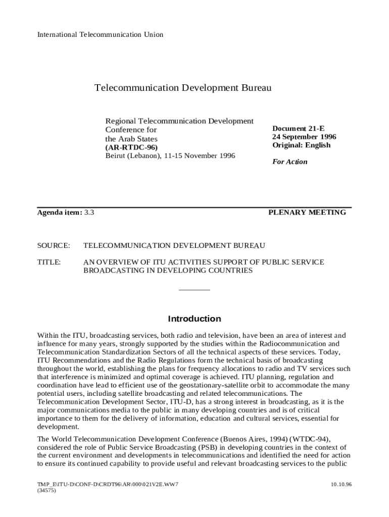 The Trends in Broadcasting: An overview of developments is a writable document that should be submitted to the relevant address in order to provide some information. It must be completed and signed, which is possible manually in hard copy, or via a certain solution such as PDFfiller. It allows to complete any PDF or Word document directly in your browser, customize it according to your requirements and put a legally-binding electronic signature. Right after completion, you can send the Trends in Broadcasting: An overview of developments to the relevant receiver, or multiple recipients via email or fax. The blank is printable as well because of PDFfiller feature and options proposed for printing out adjustment. Both in electronic and physical appearance, your form will have a clean and professional look. You can also save it as the template to use later, without creating a new blank form from scratch. Just edit the ready template.