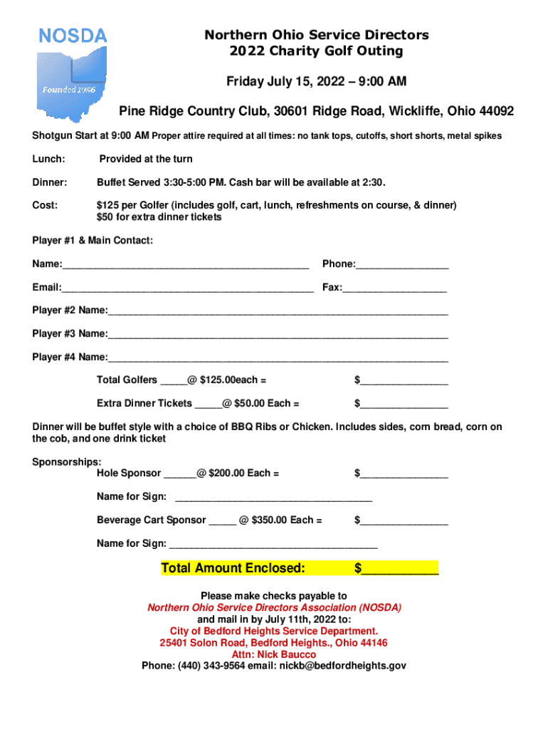 Get the free Northern Ohio Service Directors 2015 Charity Golf Outing