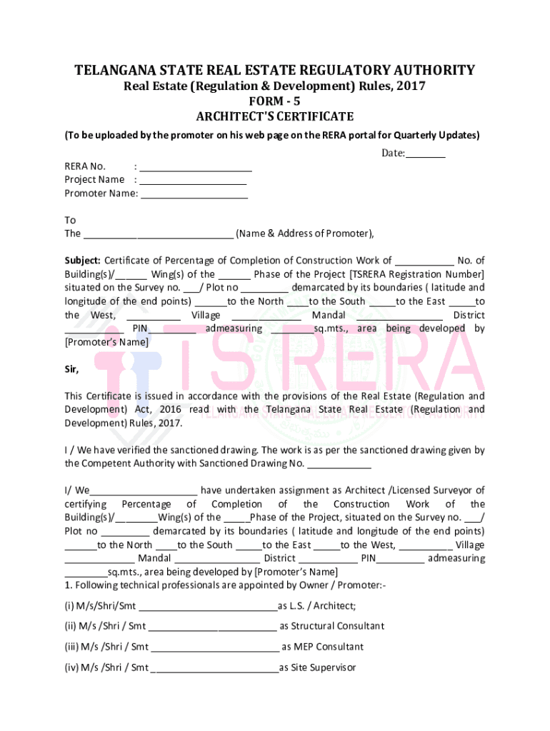 Get the free ARCHITECT'S CERTIFICATE - FORM NO 5 - FOR ...