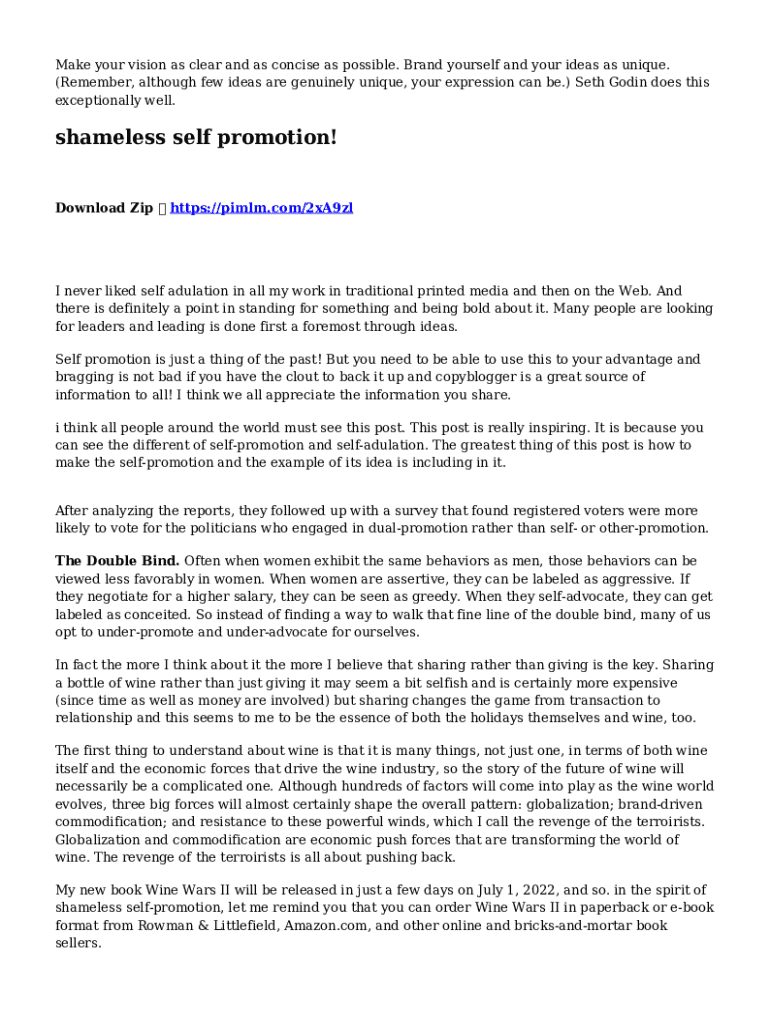 Make your vision as clear and as concise as possible. Brand yourself and your ideas as unique. (Remember, although few ideas are genuinely unique, your expression can be.) Seth Godin does this exceptionally