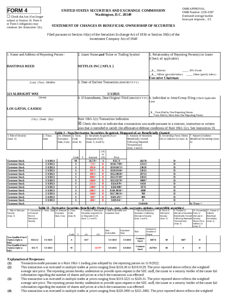 Instructions for the NETFLIX INC (: 4, Received: 05/03/2023 16:47:15) form