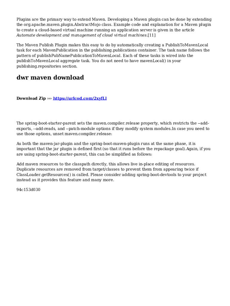 Plugins are the primary way to extend Maven. Developing a Maven plugin can be done by extending the org.apache.maven.plugin.AbstractMojo class. Example code and explanation for a Maven plugin to create