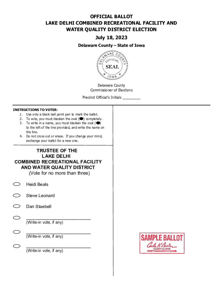 Fill in the ovals next to your chosen candidates or options using the pen provided.