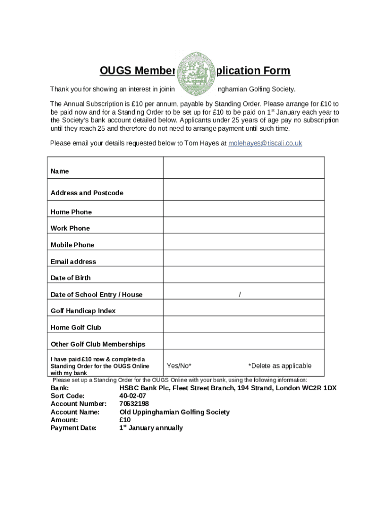 Golf Membership Application 2019 template instructions