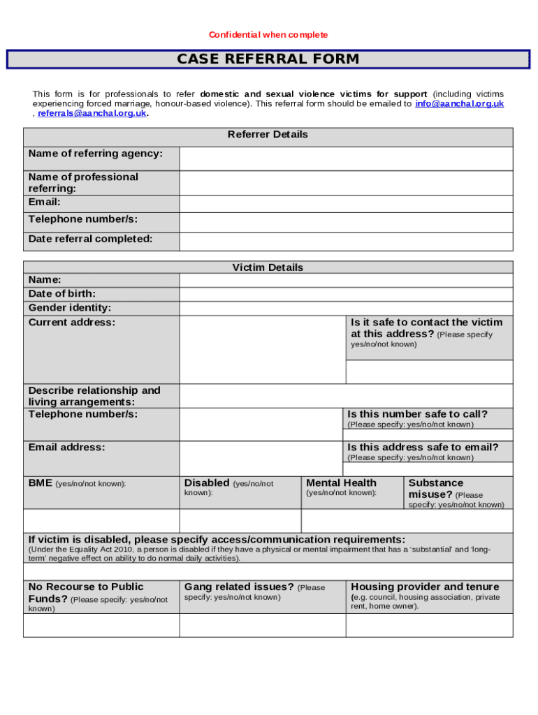 Instructions for the form Newham Substance Misuse Referral