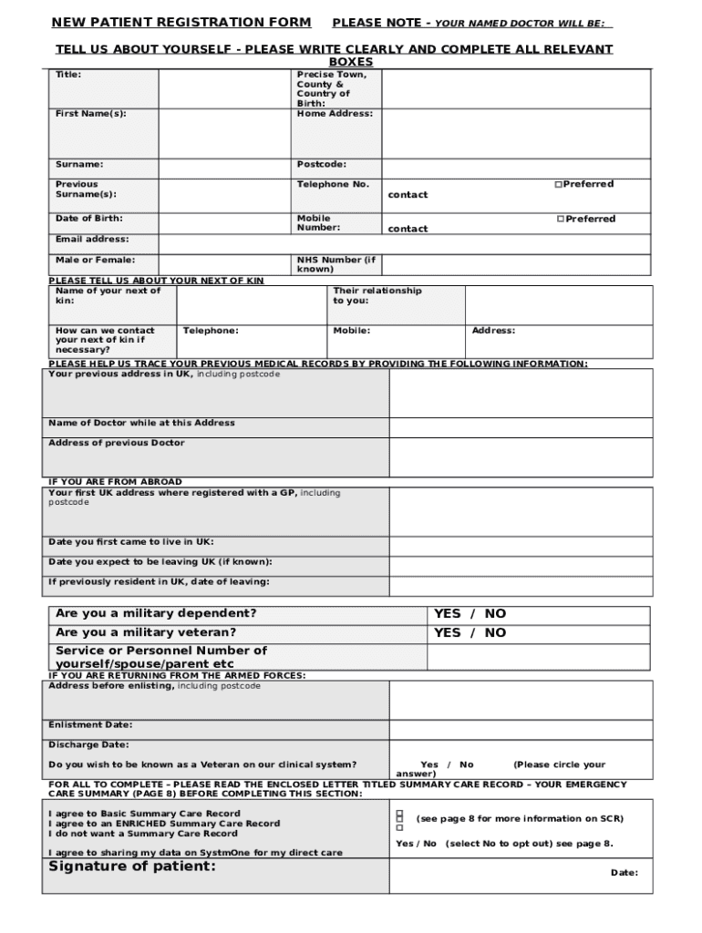 How to fill NEW PATIENT REGISTRATION PLEASE NOTE - YOUR NAMED DOCTOR WILL BE: word template