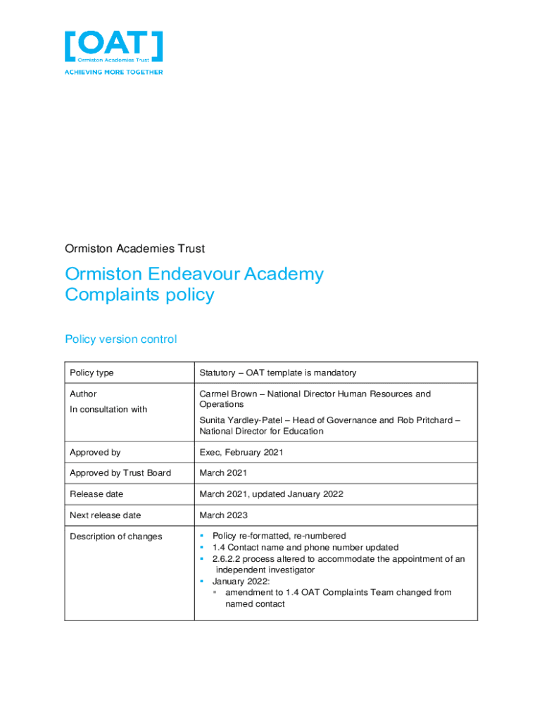 Policy typeStatutory OAT template is mandatoryAuthorCarmel Brown National Director Human Resources and