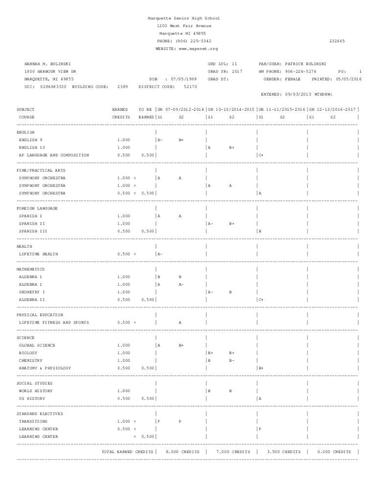 PHONE: (906) 2255342232465WEBSITE: www.mapsnet.orgHANNAH M. BULINSKIGRD LVL: 11PAR/GUARD: PATRICK BULINSKI1800 Harbor VIEW DRG