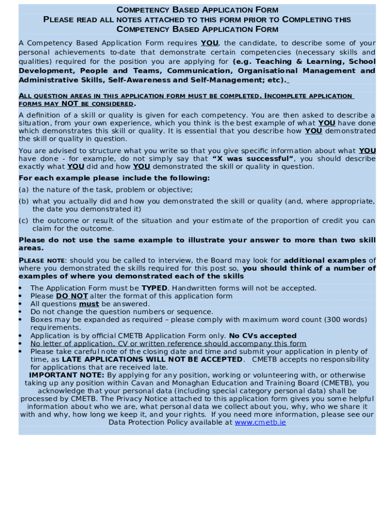 Promote Yourself 1: The Competency Based Application ... template instructions