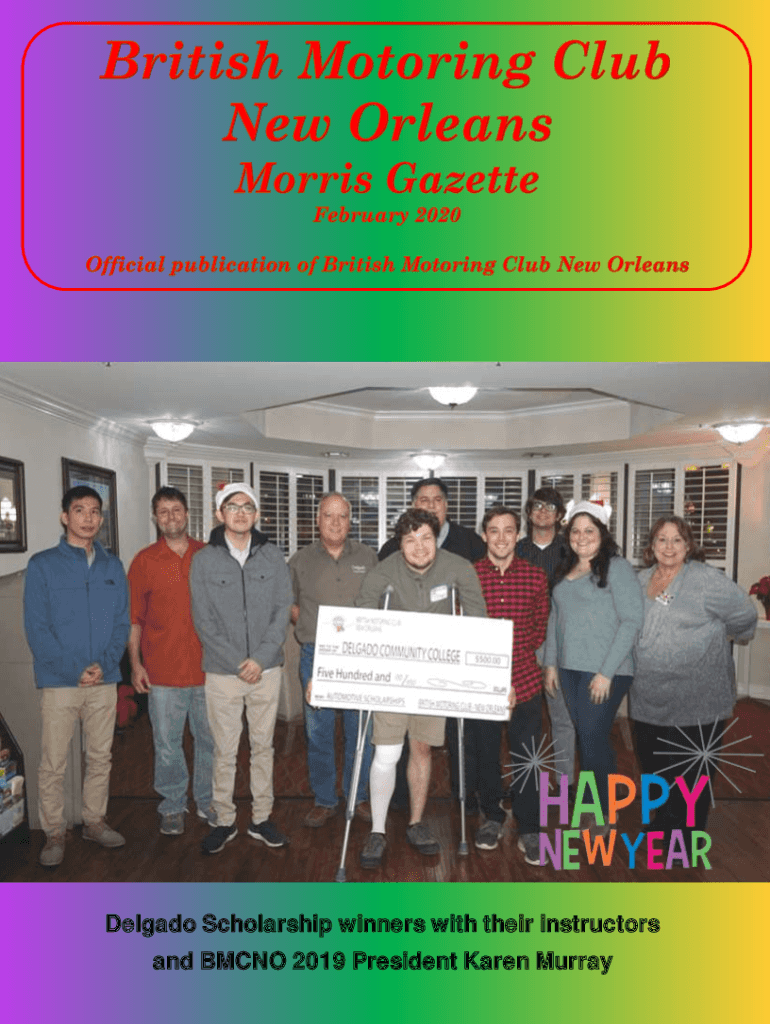 Delgado Scholarship winners with their instructorsand BMCNO 2019 President Karen MurrayBritish Motoring Club New Orleans, Morris GazetteFebruary, 2020BMCNO is affiliated with North American MGB Register