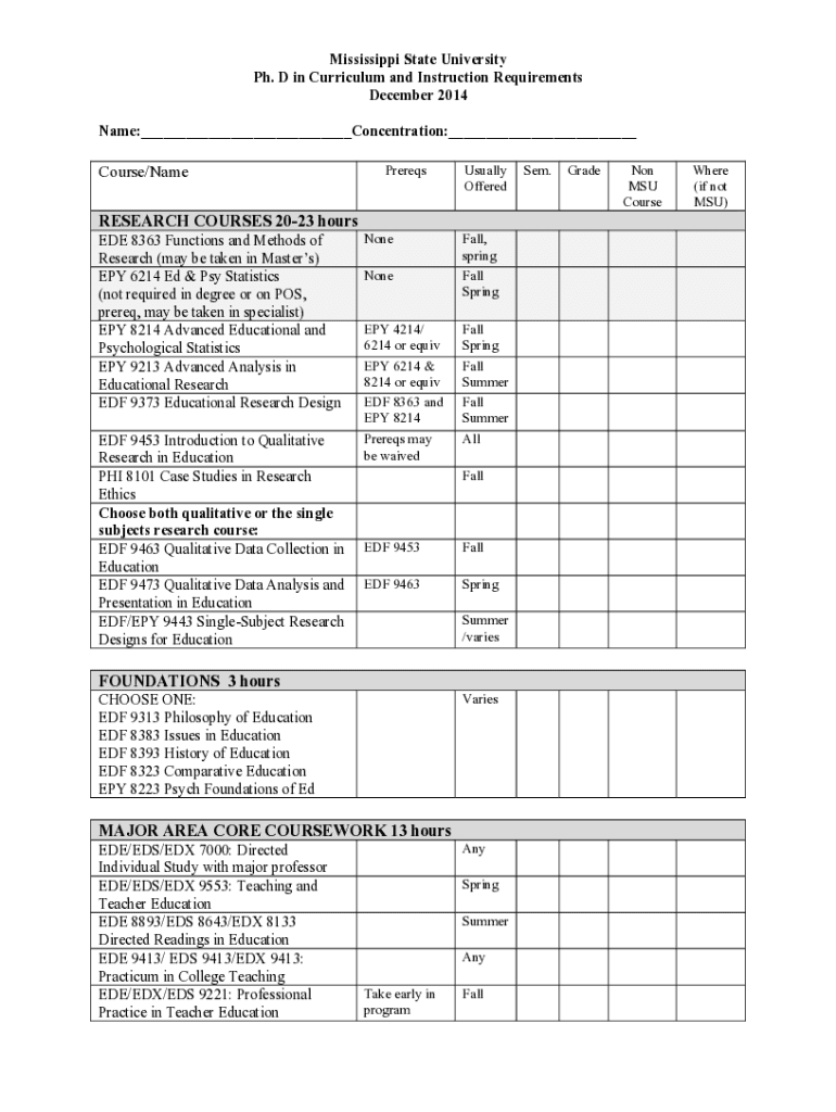 Get the free Doctoral Degree RequirementsMississippi State University