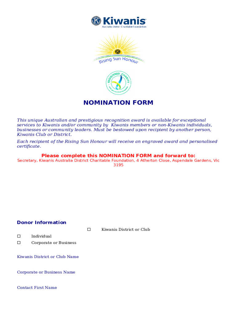 The Awards, Contests and Recognition is a Word document you can get filled-out and signed for specified purpose. Then, it is provided to the actual addressee in order to provide specific information and data. The completion and signing is possible in hard copy or via a suitable solution like PDFfiller. These tools help to send in any PDF or Word file without printing out. It also allows you to customize its appearance according to your needs and put a valid e-signature. Once done, the user ought to send the Awards, Contests and Recognition to the recipient or several recipients by mail or fax. PDFfiller is known for a feature and options that make your Word template printable. It has different settings when printing out appearance. No matter, how you'll distribute a form after filling it out - in hard copy or electronically - it will always look neat and organized. In order not to create a new file from scratch all the time, turn the original file as a template. Later, you will have an editable sample.
