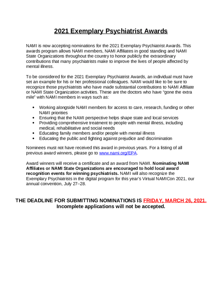 Instructions for the NAMI Honors Exemplary Psychiatrists From 13 States form