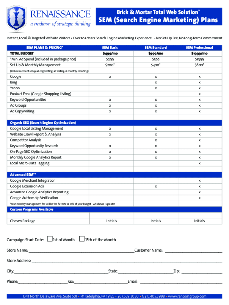 Brick & Mortar Total Web SolutionSEM (Search Engine Marketing) Plans Instant, Local, & Targeted Website Visitors Over 10+ Years Search Engine Marketing Experience No SetUp Fee, No LongTerm Commitment