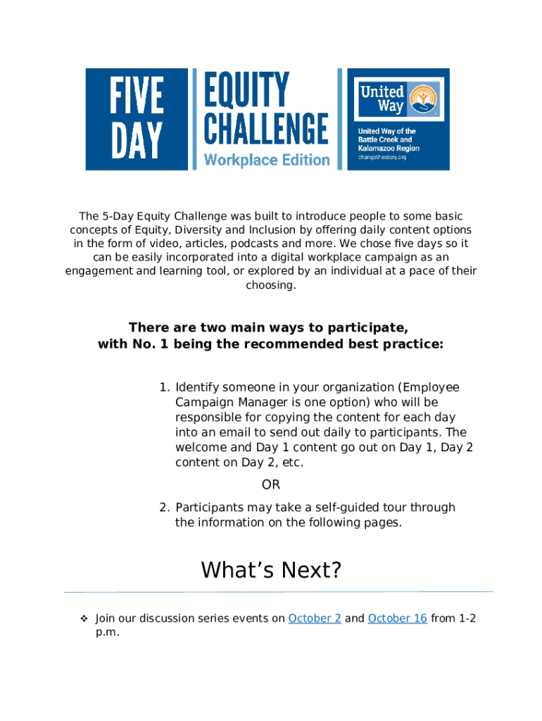 Instructions for the Heart of West Michigan United Way Equity Challenge begins ... form
