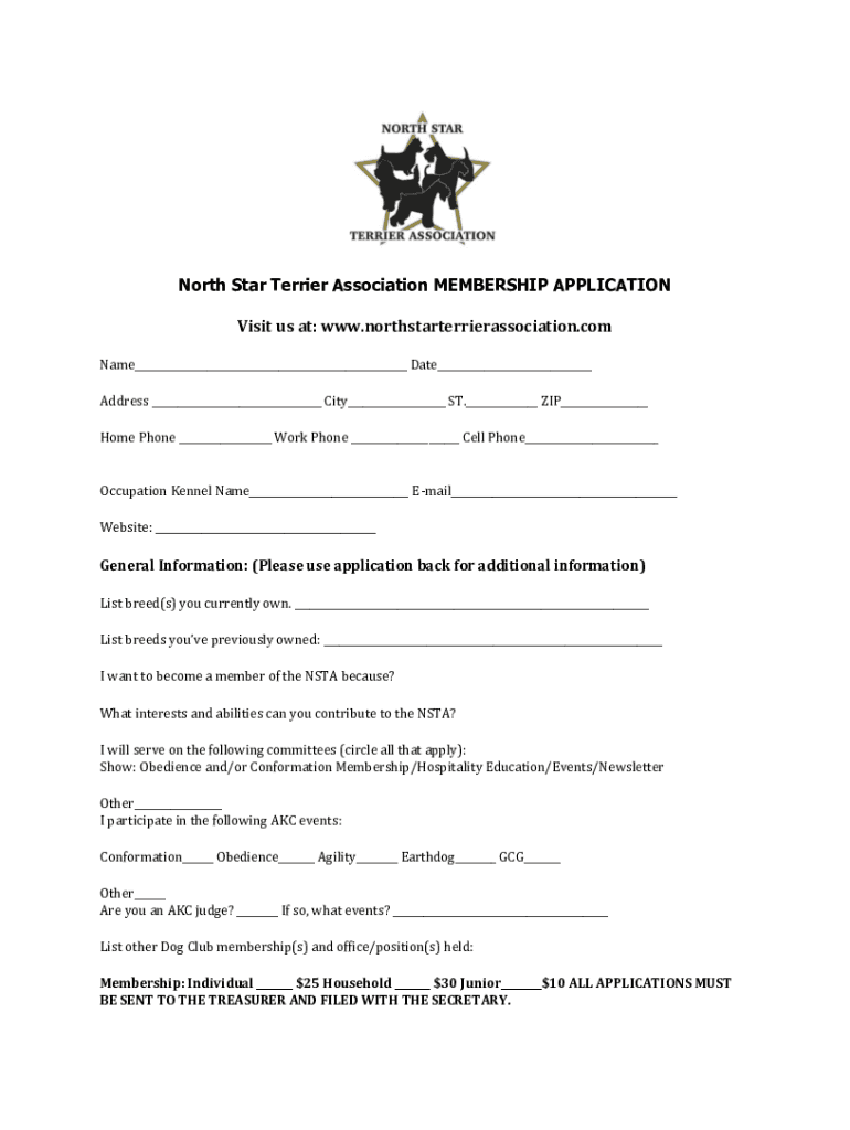 Obtain a membership application form from the North Star Terrier Association website or office.