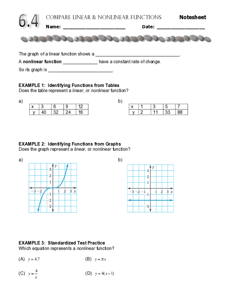 Get the free 6.4 Comparing Linear and Nonlinear Functions Notes