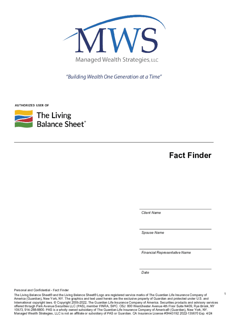 Building Wealth One Generation at a TimeFact FinderClient NameSpouse NameFinancial Representative NameDatePersonal and Confidential Fact Finder The Living Balance Sheet and the Living Balance Sheet