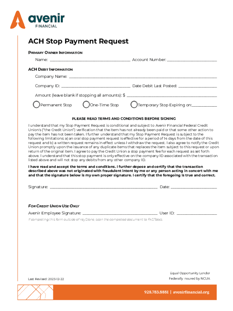 Keep a copy of the completed ACH Stop Payment form for your records.