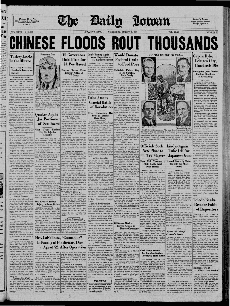 IilUBelieve It or Not Rlple,\'11 Portrayal of Aatoundlor BappenlnsAppe.... Dalll on Page !.Today\'. Topic. A Dan, Oolumn of PerUnen\' Editorial Comment Oil Page Twopi\'lve CEl.\"TS6 PAGESIOWA CITY.