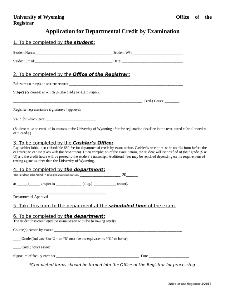 What is Application for Departmental Credit by Examination Form?