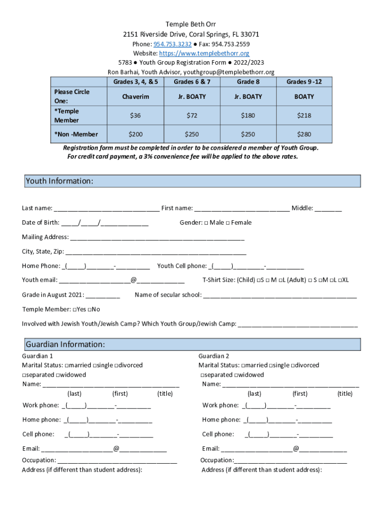 Fill out your temple beth orr youth online with pdfFiller!