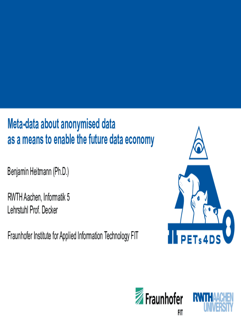 Metadata about anonymised data as a means to enable the future data economy Benjamin Heitmann (Ph.D.) RWTH Aachen, Informatik 5 Lehrstuhl Prof. Decker Fraunhofer Institute for Applied Information