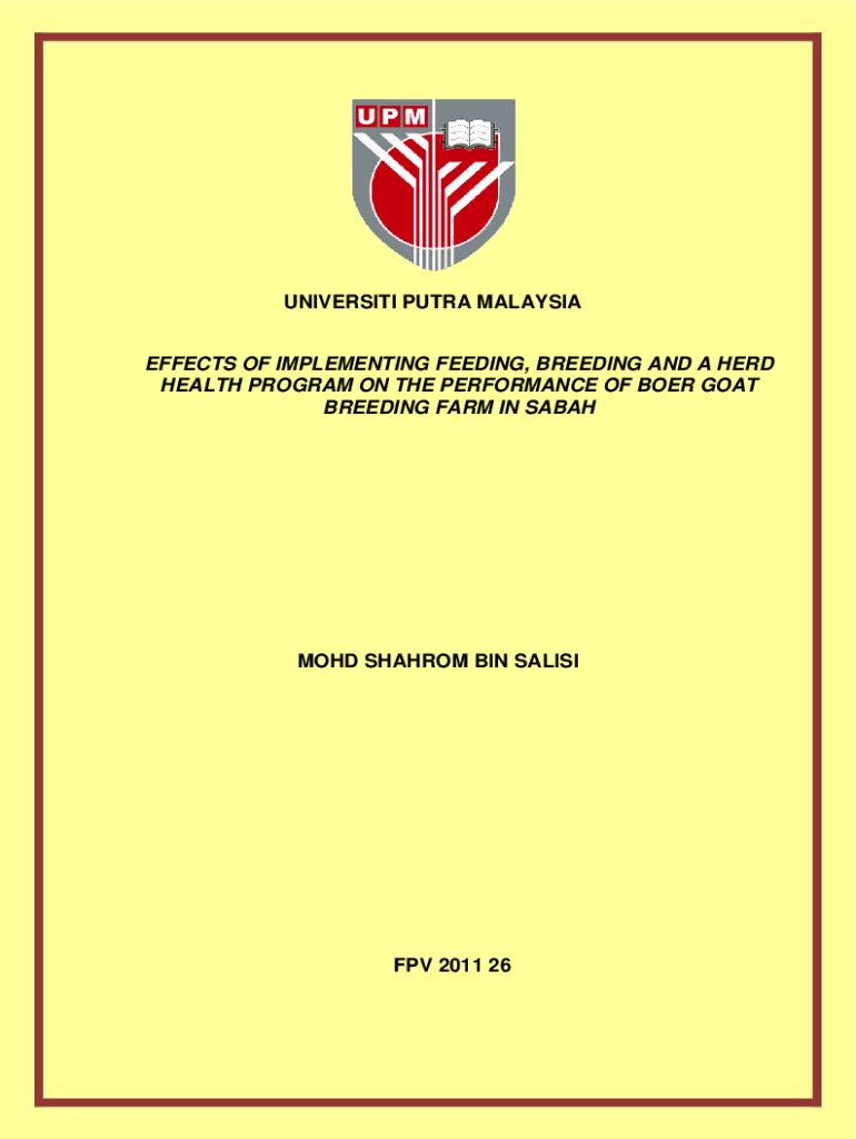 UNIVERSITI PUTRA MALAYSIA EFFECTS OF IMPLEMENTING FEEDING, BREEDING AND A HERD HEALTH PROGRAM ON THE PERFORMANCE OF BOER GOAT BREEDING FARM IN SABAHMOHD SHAHROM BIN SALISIFPV 2011 26TUPMEFFECTS OF