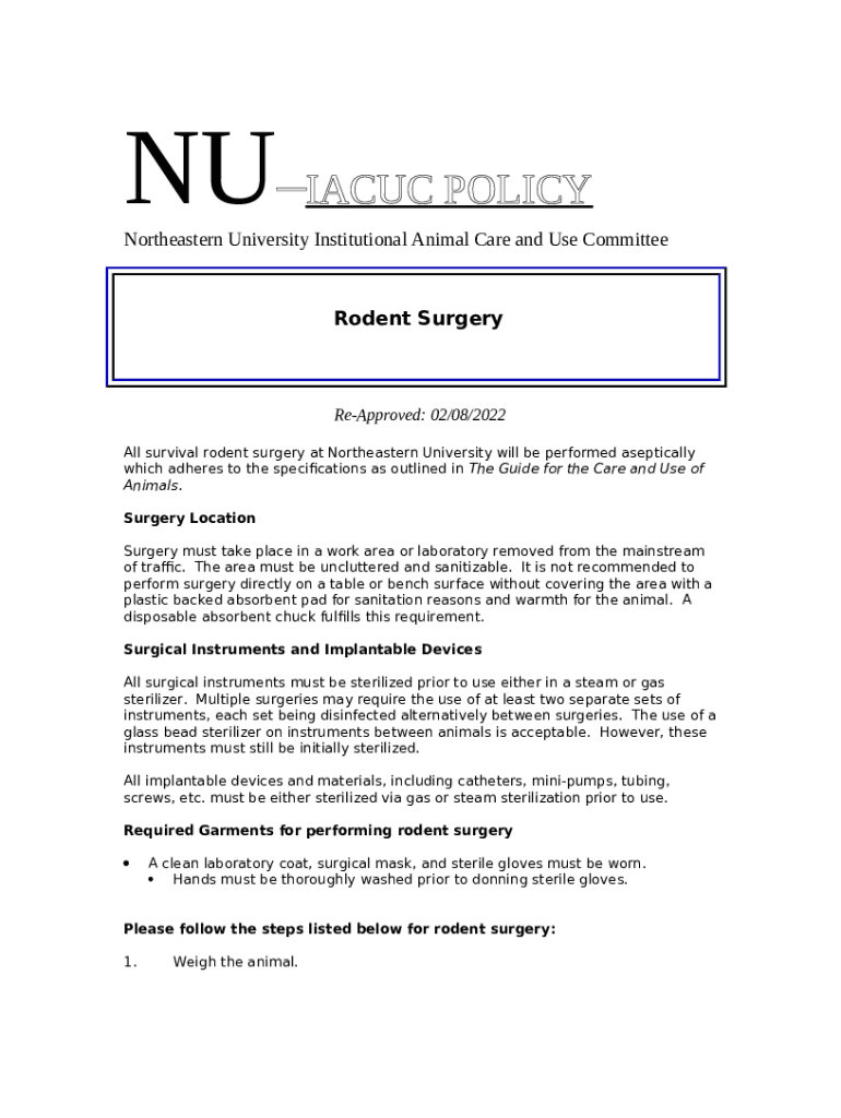 What is Rodent Surgery Card - Research at Northeastern Form?