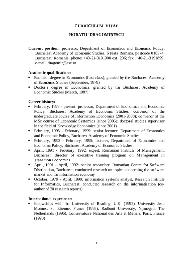 The Bucharest University of Economic Studies 6 Piata Romana, ... is a Word document that has to be filled-out and signed for specified needs. Then, it is furnished to the actual addressee in order to provide some information of any kinds. The completion and signing is available in hard copy by hand or with a suitable solution like PDFfiller. These services help to send in any PDF or Word file without printing out. It also lets you edit its appearance according to your needs and put legit electronic signature. Once you're good, the user sends the Bucharest University of Economic Studies 6 Piata Romana, ... to the respective recipient or several recipients by mail and also fax. PDFfiller provides a feature and options that make your blank printable. It has various options for printing out. It does no matter how you send a document - physically or electronically - it will always look neat and organized. To not to create a new editable template from scratch again and again, make the original file as a template. After that, you will have a rewritable sample.