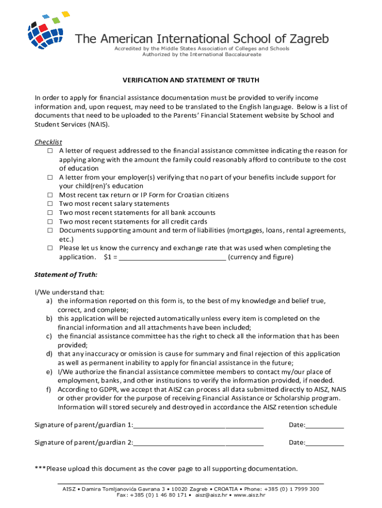 The American International School of Zagreb Accredited by the Middle States Association of Colleges and Schools Authorized by the International BaccalaureateVERIFICATION AND STATEMENT OF TRUTH In