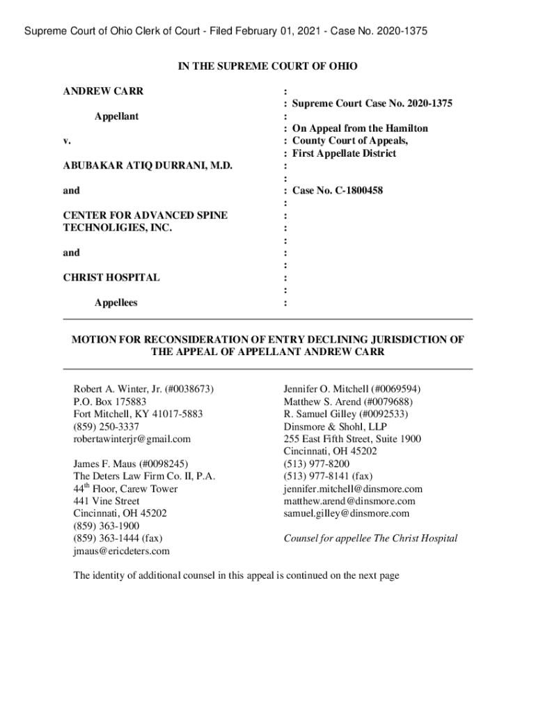 Get the free IN THE SUPREME COURT OF OHIO ANDREW CARR : : Supreme ...