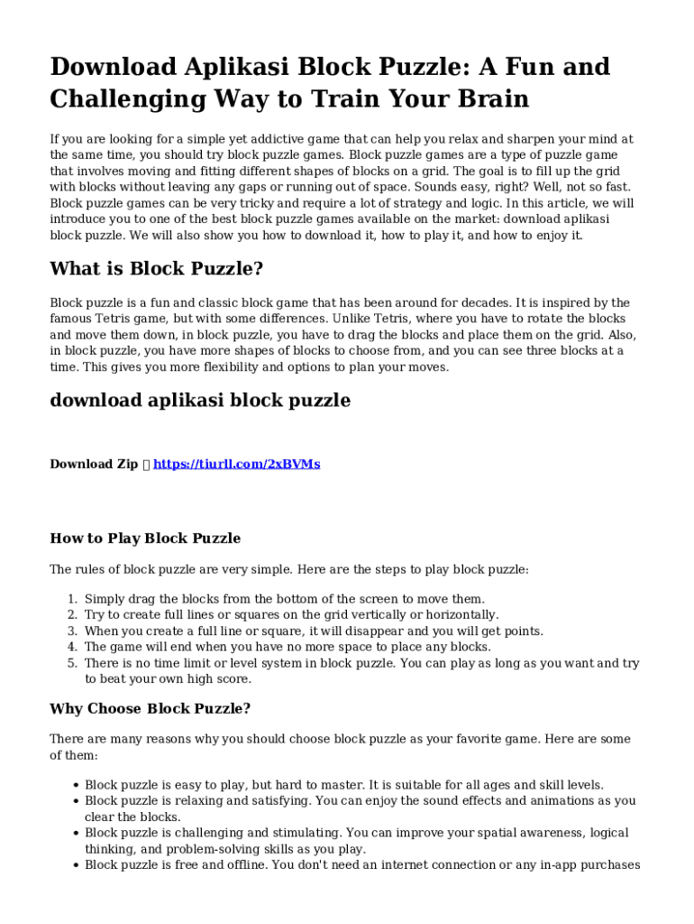 Download Aplikasi Block Puzzle: A Fun and Challenging Way to Train Your Brain If you are looking for a simple yet addictive game that can help you relax and sharpen your mind at the same time, you