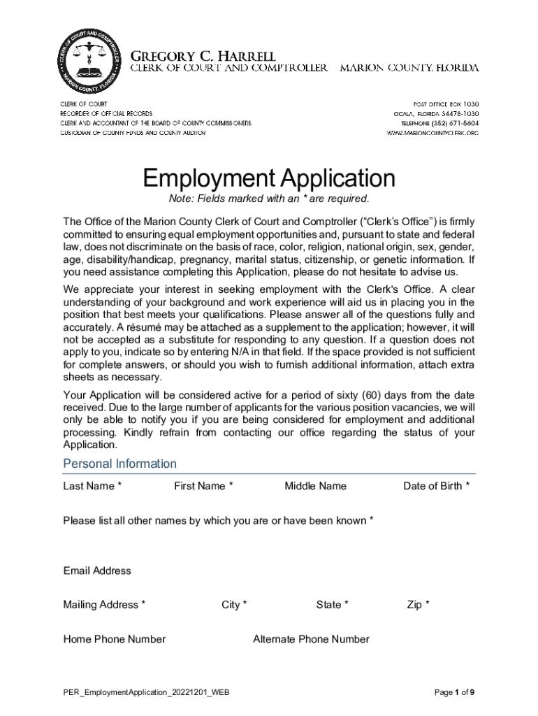 Note: Fields marked with an * are required. The Office of the Marion County Clerk of Court and Comptroller (Clerks Office) is firmly