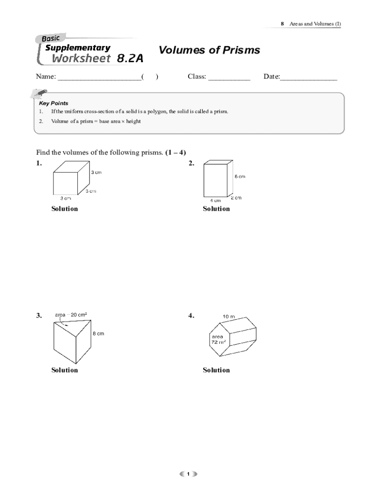 8Areas and Volumes (I)Volumes of Prisms