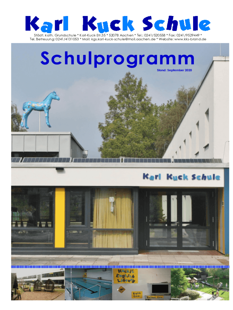 Stdt. kath. Grundschule * KarlKuckStr.35 * 52078 Aachen * Tel.: 0241/520558 * Fax: 0241/9529449 * Tel. Betreuung: 0241/4131053 * Mail: kgs.karlkuckschule@mail.aachen.de * Website: www.kksbrand.deSchulprogramm